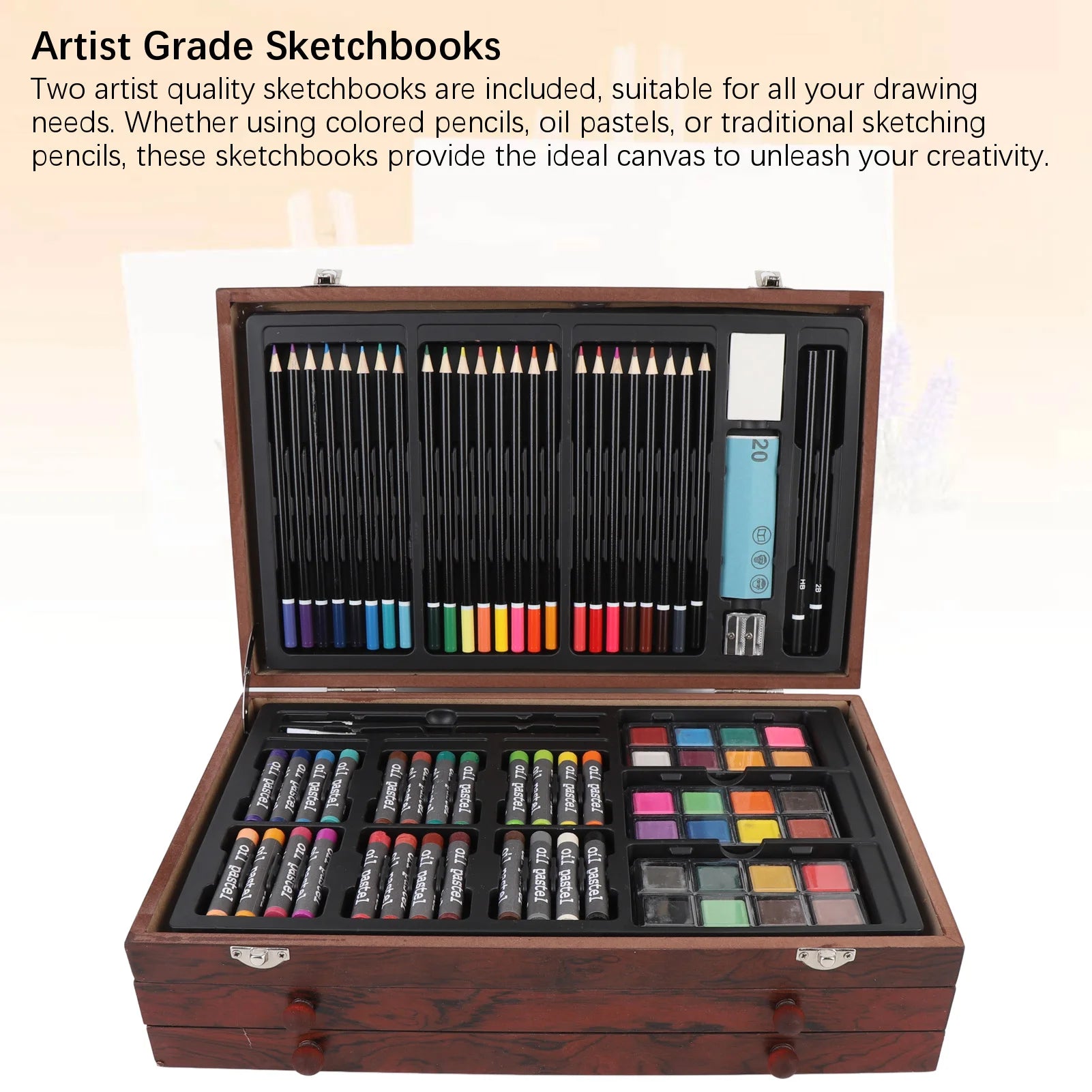 Comes with two high-quality artist sketchbooks, ideal for colored pencils, oil pastels, graphite, and more. Whether you're sketching indoors or outdoors, these books provide a smooth, reliable surface for your ideas to flourish. -