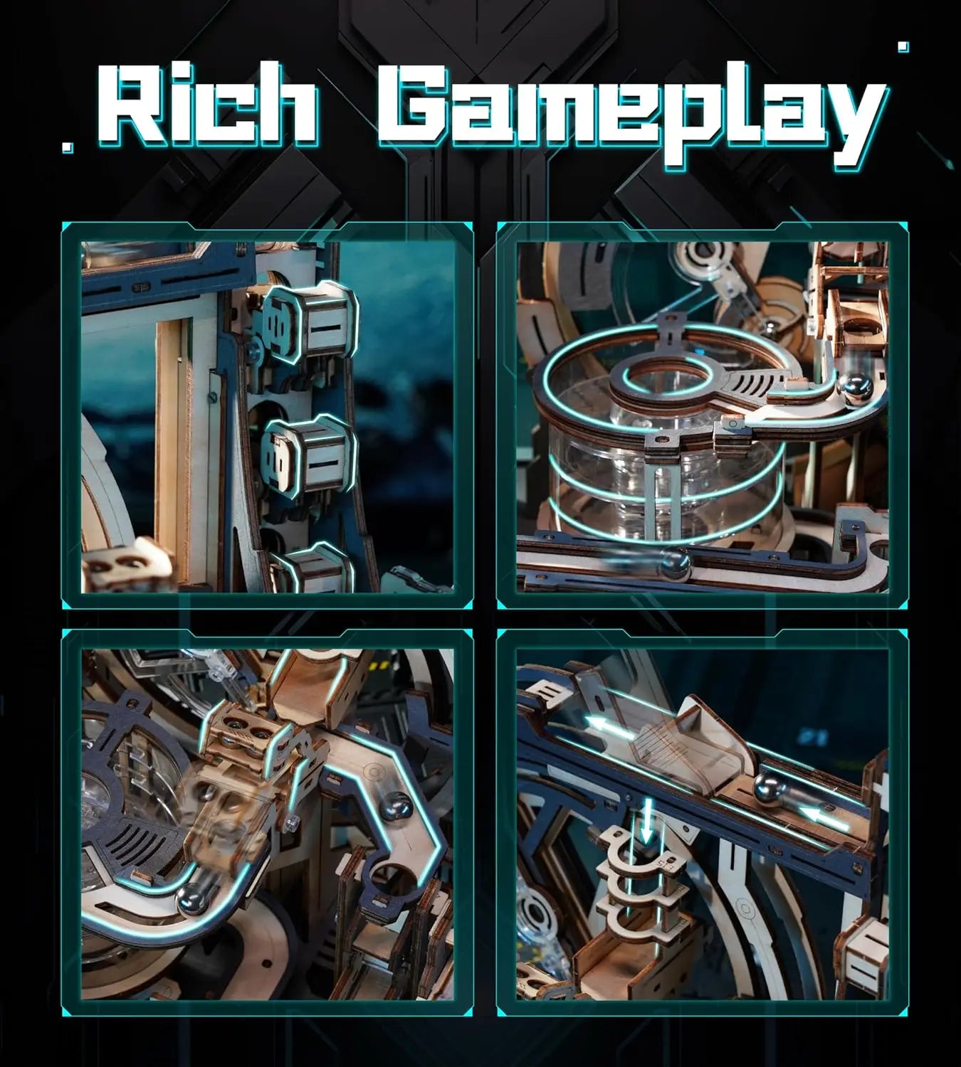 Robotime Rokr Electric Model Kits Marble Spaceport 3D Puzzles Brain Teaser Wooden Puzzles Building Toy Gifts for Men/Women/Teens